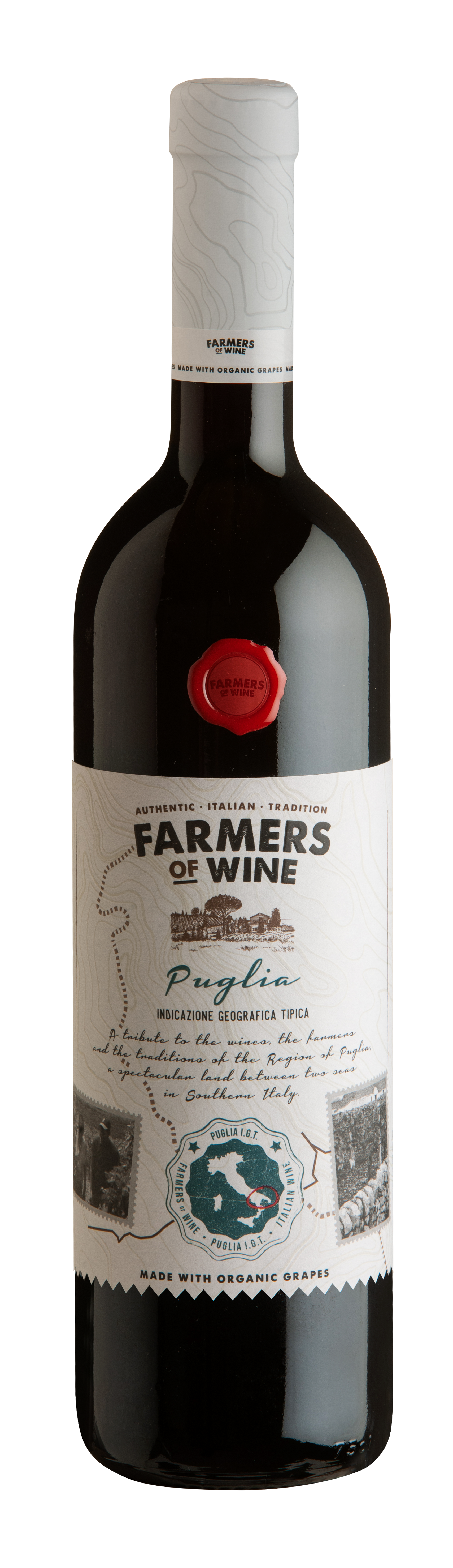 Crafted from grapes indigenous to Puglia in southern Italy using traditional methods, Farmers of Wine is certified organic by ICEA, ensuring the grapes are grown without pesticides, insecticides or herbicides.
