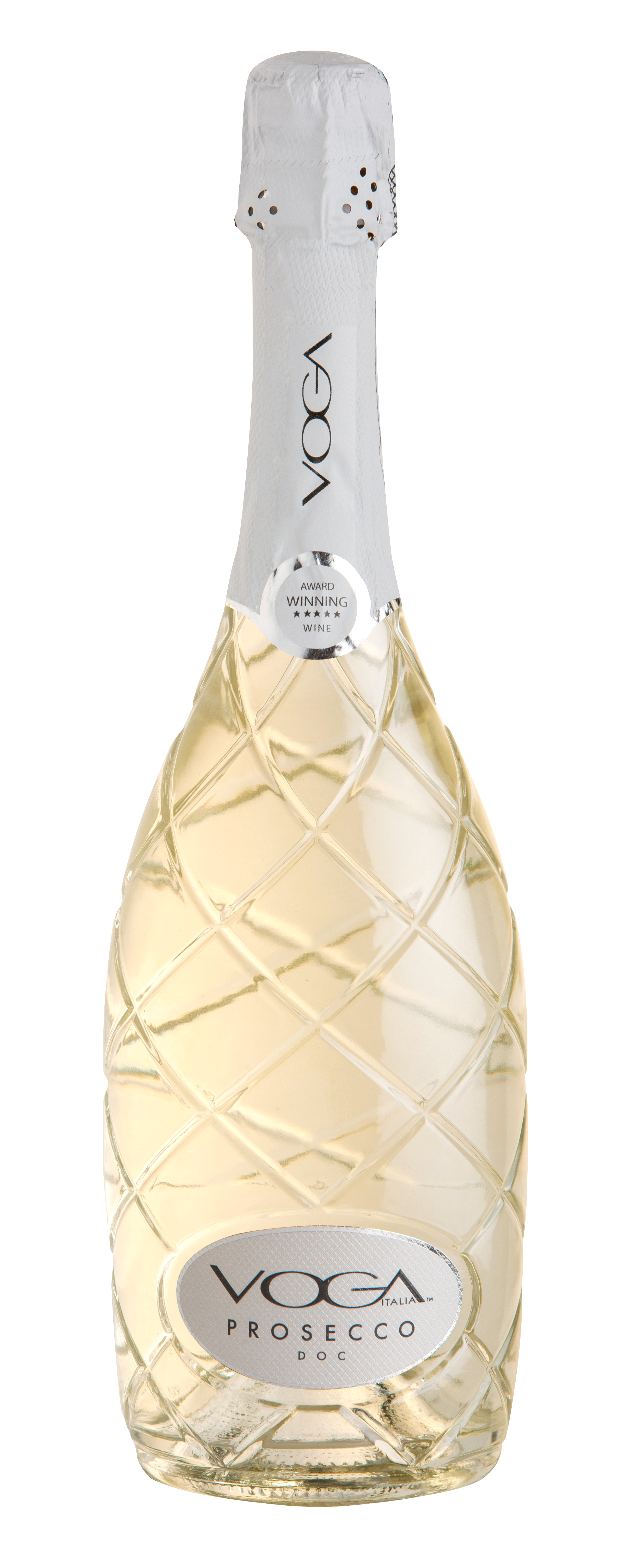 VOGA Prosecco DOC Brut perfectly embodies what modern drinkers are looking for, an Italian stylish wine, kept in an elegant, adorned bottle. This DOC Prosecco is crisp, clean and refreshingly full flavored with a vibrant character, excellent intensity and a fruity nose filled with ripe apricot and peach notes.